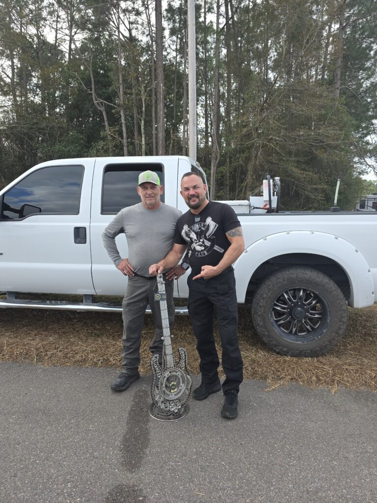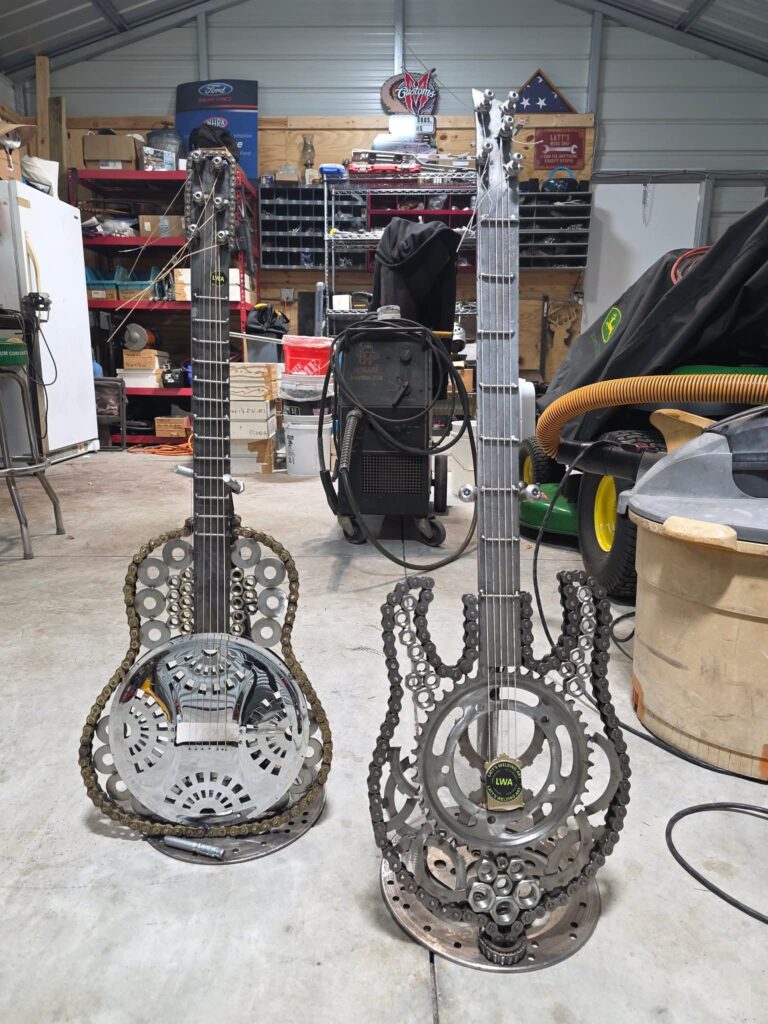 Explore unique welded sculptures crafted from motor parts and up-cycled metal